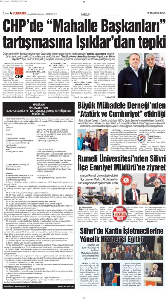 Silivri Belediye Başkanı Bora Balcıoğlu, İstanbul Çevre Düzeni Planı hazırlıkları kapsamında belediye başkan yardımcıları ve İBB ekipleri ile bir araya geldi. Başkan Balcıoğlu, ilçenin doğal yapısını bozmadan gelişimin sağlanması gerektiğini belirtti.Başkan Balcıoğlu, Silivri'nin tarım alanında gün geçtikçe gelişmeye ve potansiyelini yükseltmeye devam ettiğini belirterek, "Çevre düzeni planlarımızı yaparken, bu büyüyen potansiyeli göz önünde bulunduruyoruz. Silivri, İstanbul'un nefes alan bölgelerinden biri. Tarım, turizm ve sanayi dengesi korunarak hazırlanacak bir çevre düzeni planı, ilçemizin geleceğini şekillendirecek en önemli adımlardan biri olacak. Bu süreçte, tüm önerilerimizi Büyükşehir Belediyemizin yetkilileri ile paylaşıyoruz" şeklinde konuştu.