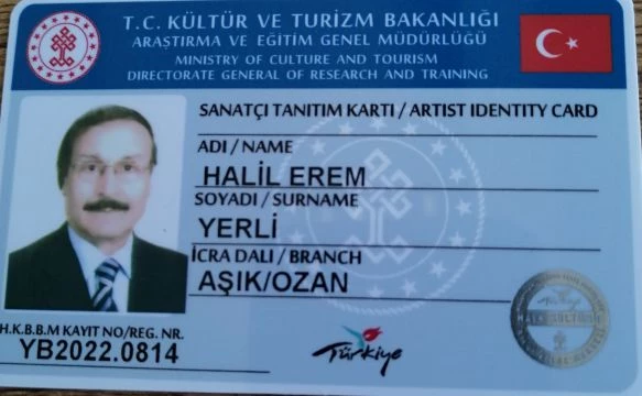 Bundan böyle; artık Kültür ve Turizm Bakanlığı listesine YB2022.0814 numara ile kayıtlı ozanım. Kültür ve Turizm Bakanlığı’nın çeşitli evraklarımı ve şiirlerimi incelemelerinin arından, Ankara’ya çağırıldım. Bakanlığın 7 Haziran 2022 günü, 7-8 kişilik Değerlendirme Kurulu’nun çeşitli sorular, ses-saz değerlendirmelerinde; Aşık/Ozan olarak Kültür ve Turizm Bakanlığı kartı kazanmaya layık görüldüm.