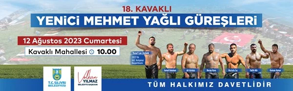Silivri Belediyesi tarafından ata sporunun yaşatılması ve geniş kitlelere duyurulması amacıyla düzenlenen 18. Kavaklı Yenici Mehmet Yağlı Güreşleri bu yıl da büyük bir coşkuya sahne olacak. 12 Ağustos 2023 Cumartesi günü saat 10.00’da Kavaklı Mahallesi’nde (Belediye deposu karşısı) düzenlenecek etkinlikte pehlivanlar er meydanını titretecek. 14 farklı boyda gerçekleştirilecek olan organizasyona 2023 yılı Kırkpınar Başpehlivanı Yusuf Zeybek ile birlikte altın kemerli başpehlivanlar; İsmail Balaban, Ali Gürbüz, Recep Kara, Fatih Atlı, Mustafa Taş ve Osman Aynur katılacak. Organizasyonda ayrıca Özkan Yılmaz, Furkan Durmuş Altın, Hamza Köseoğlu, Serhat Balcı, Abdullah Güngör, Ünal Karaman ve Yıldıray Akın gibi ünlü başpehlivanlar da boy gösterecek.