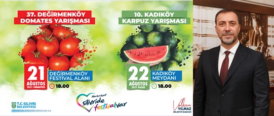 Cumartesi ve Pazar günü gerçekleştirilecek festivallerin önemine vurgu yapan Silivri Belediye Başkanı Volkan Yılmaz, “Tarım Kenti Silivri’de yetiştirilen doğal ürünlerin tanıtımlarına yönelik gerçekleştirdiğimiz festivallerimize devam ediyoruz. Amacımız Silivri’nin bereketli topraklarında yetişen lezzetli ve özel ürünleri geniş kitlelere duyurmak ve çiftçilerimize gelir sağlayarak daha çok üretime teşvik etmek. Ben bu vesileyle hafta sonu gerçekleştireceğimiz Değirmenköy Domates Festivali ve Kadıköy Karpuz Festivali’ne tüm hemşehrilerimi davet ediyorum” diye çağrı yaptı.